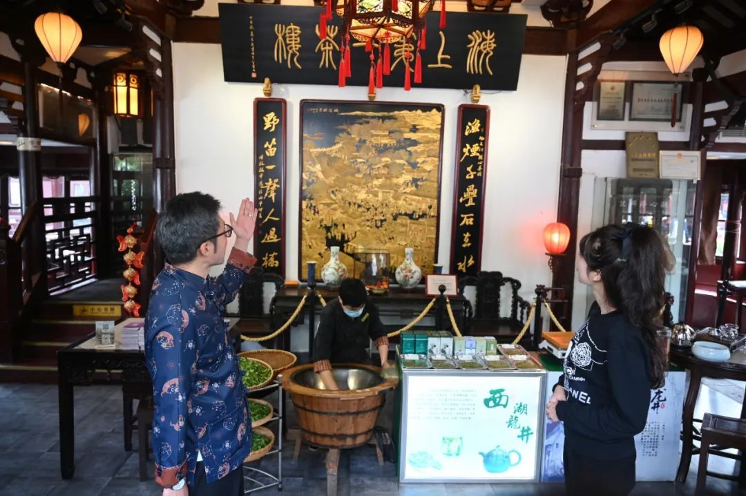黄隆泰茶庄的前身为沪浙茶叶联营处下属的浙江商店,以经营西湖龙井闻名沪上。据说,女王从来不喝外面的茶,平时外出习惯自己带茶水,但是来到湖心亭,不仅开了先例喝了茶,还喝了三口!