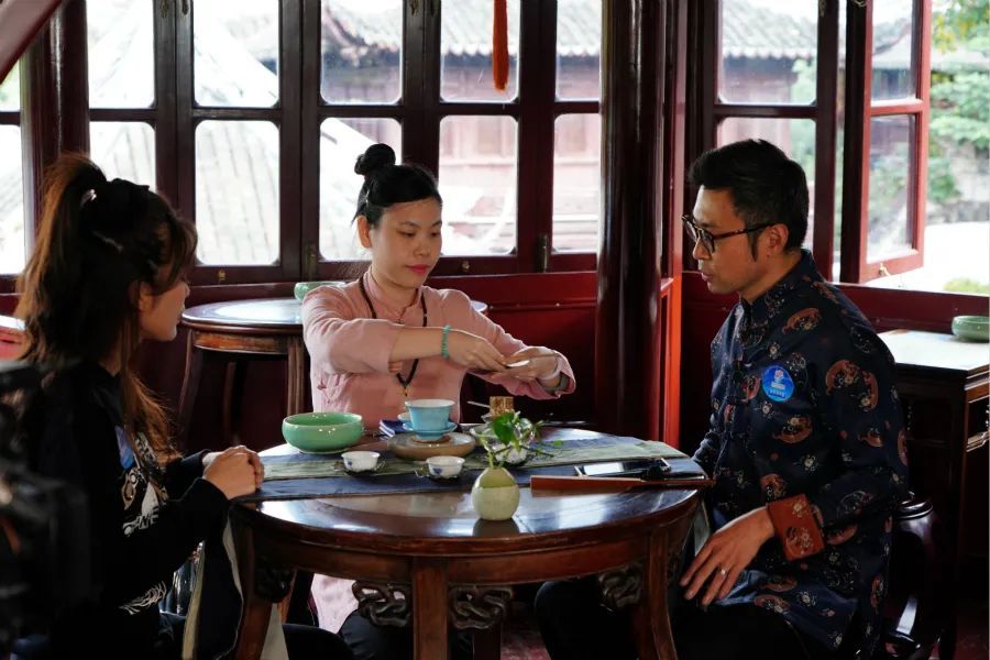在海上名家谈活动正式开始前,湖心亭的高级茶艺师亲自为大家进行了精湛的茶艺表演,茶叶选用的祁门红茶。