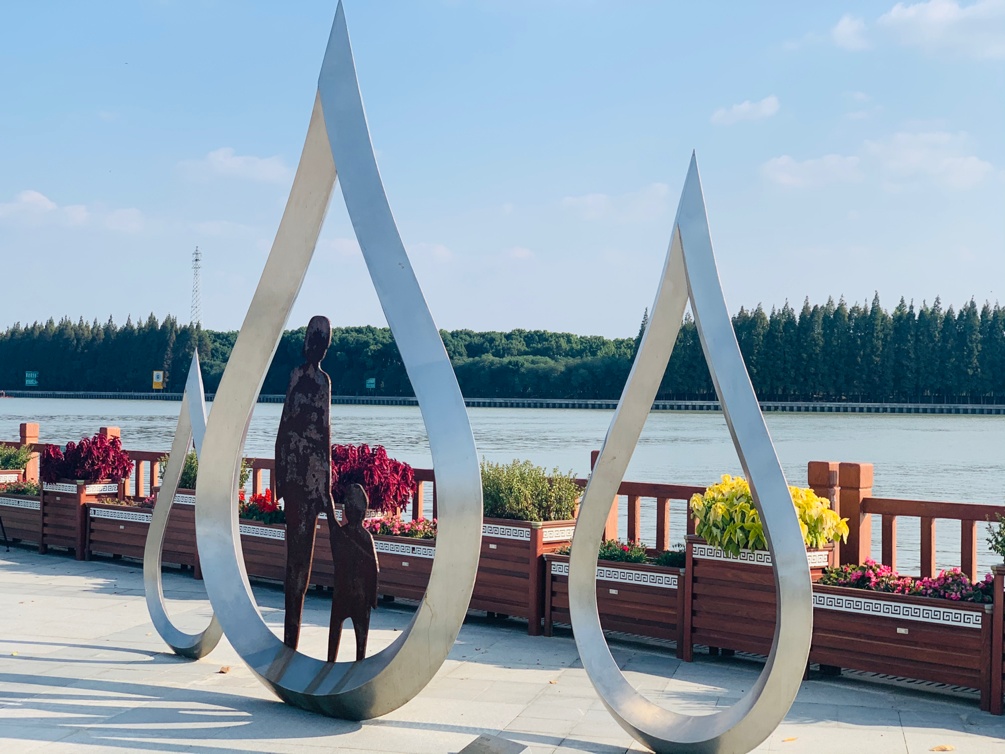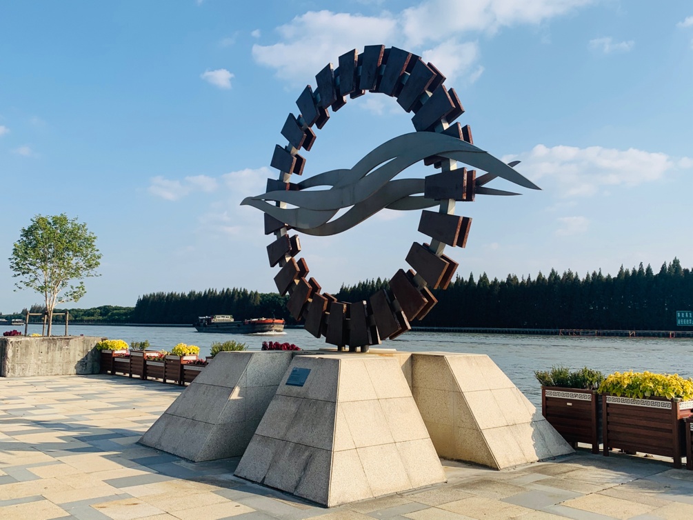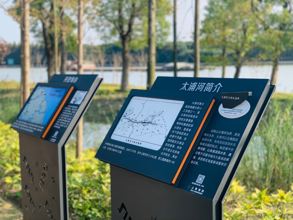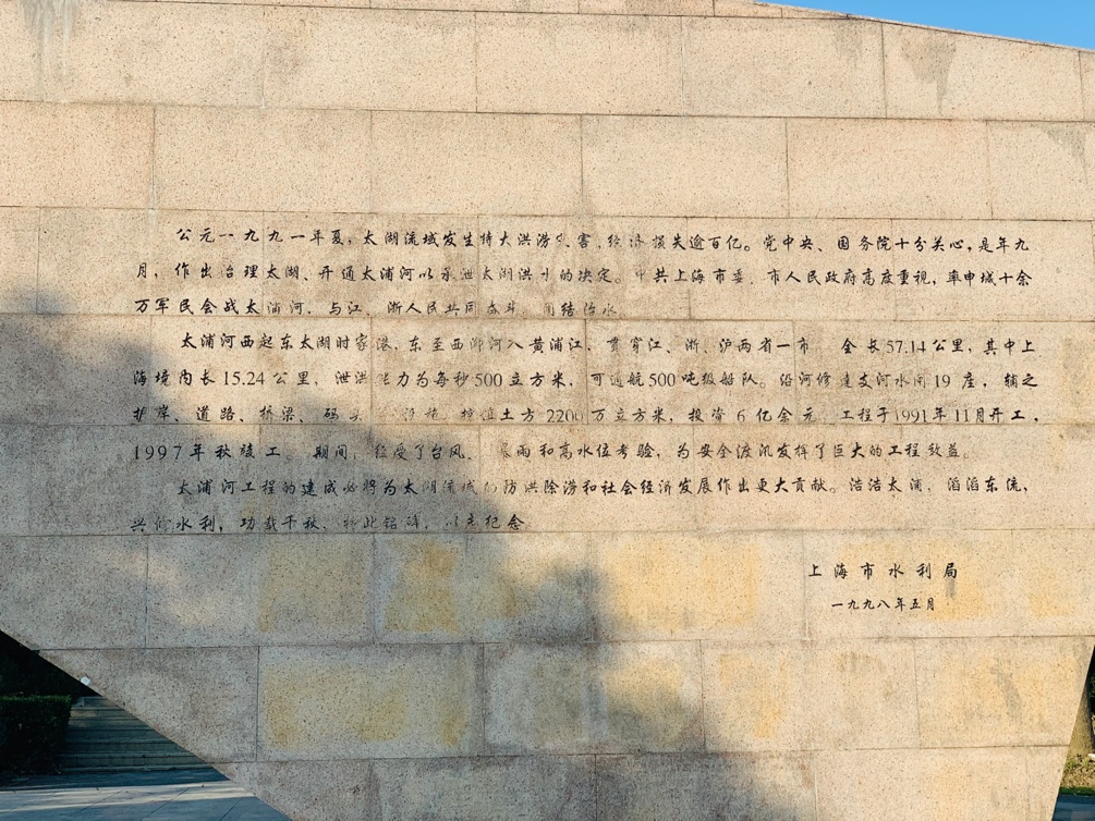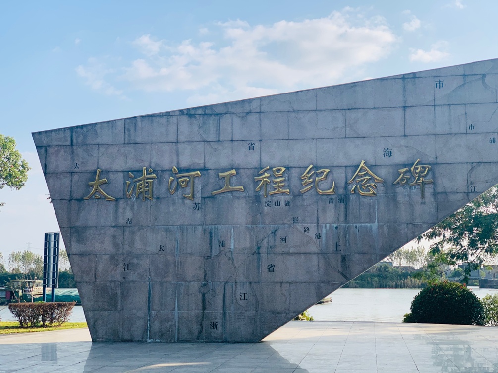 沿河而走,在太浦河纪念碑前,听工作人员讲解太浦河工程的建设故事,感受工程为防洪除涝和经济发展作出的重要贡献。
