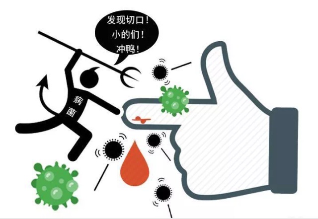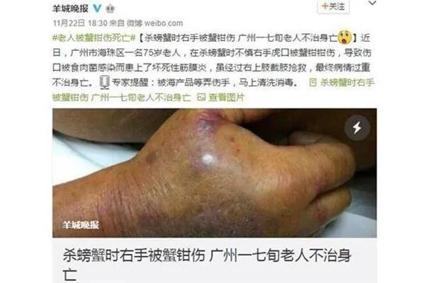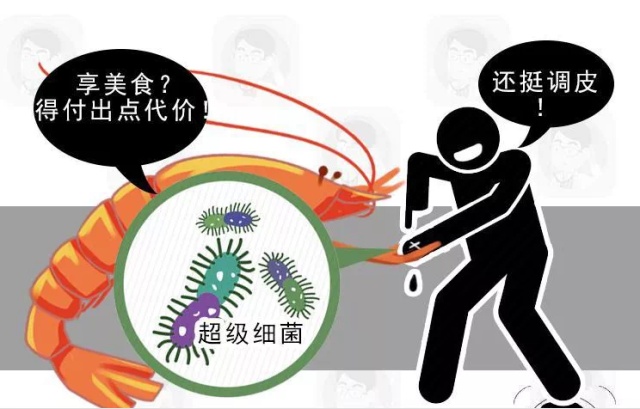 创伤感染:常由于身体原有创口接触带菌海产品,或带菌海水,或被带菌海产品刺伤而感染,表现为肢体局部的皮肤、肌肉坏死等,亦可迅速发展为继发性脓毒症,危急生命,往往因需要截肢而导致残疾;