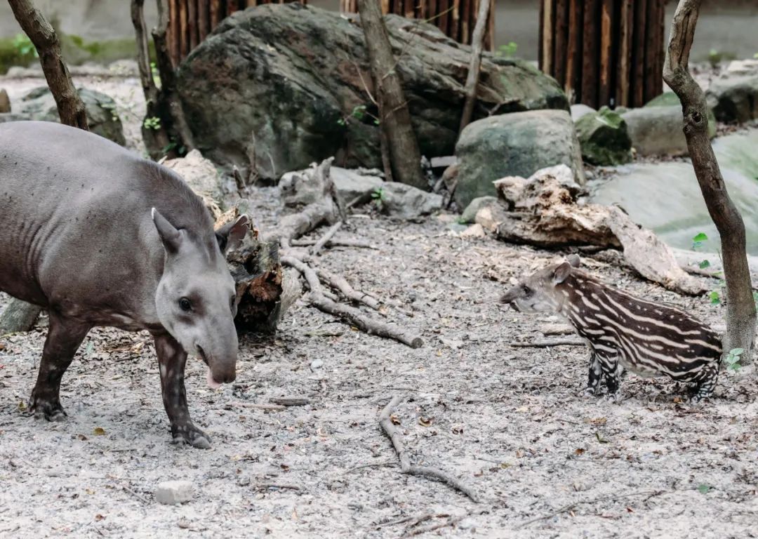 目前小南美貘身上的花纹颜色还没有什么变化,随着时间推移,花纹会慢慢褪去,也会慢慢学着独立,到了真正长大的时候,妈妈就可以放心地让小儿子去独立生活啦。