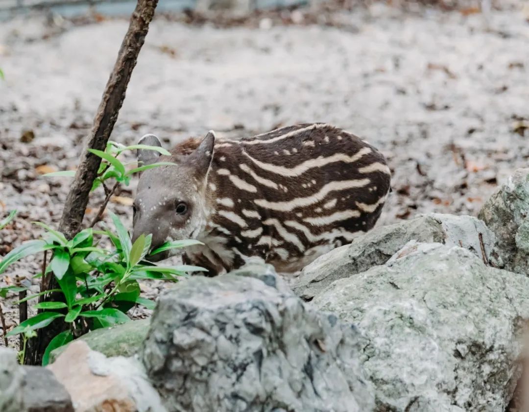 小南美貘和大部分食草动物幼崽一样,一个月的时候就可以自由采食树叶、青草、胡萝卜等,但它目前还是要吃母乳的,小家伙有时候吃奶时间可长达二十分钟。