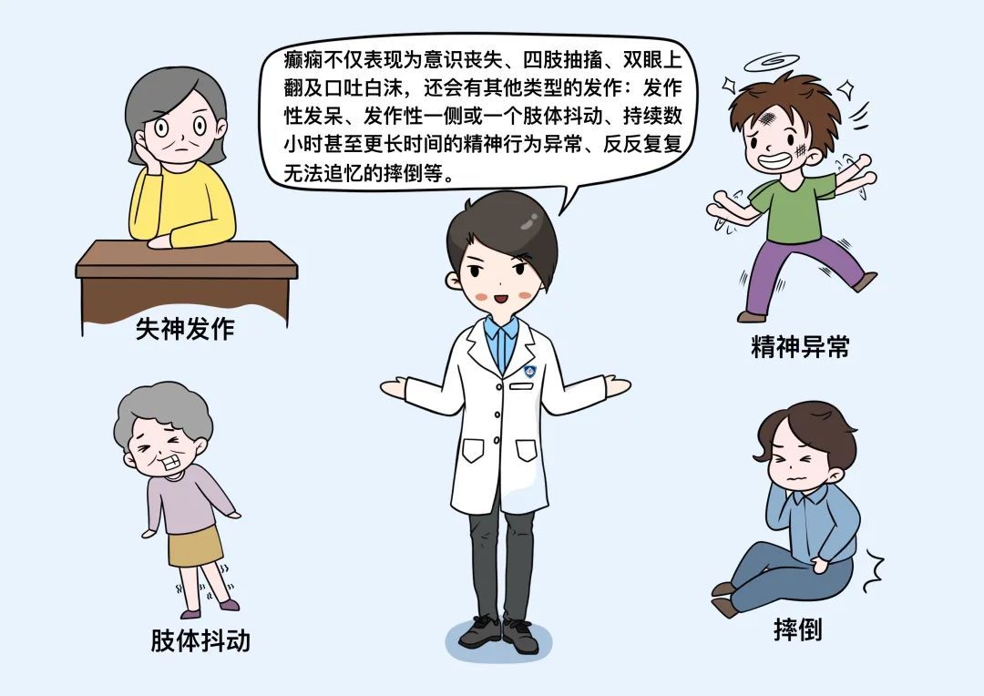 癫痫不仅表现为意识丧失、四肢抽搐、双眼上翻及口吐白沫,还会有其他类型的发作:发作性发呆、发作性一侧或一个肢体抖动、持续数小时甚至更长时间的精神行为异常、反反复复无法追忆的摔倒等。旁观者需安静观察,待患者自行恢复即可。必要时采取安全保护措施,以免患者在意识丧失过程中受伤,遇到危险。如发作频繁需及时来医院就诊。