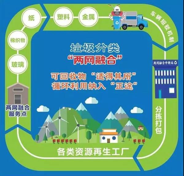 所谓“两网”,是指生活垃圾分类收运体系和生活源再生资源回收体系;“两网融合”是指通过上述两个体系融合,实现生活源再生资源与其他类别生活垃圾的统一分类交投、分类收运和资源循环利用。