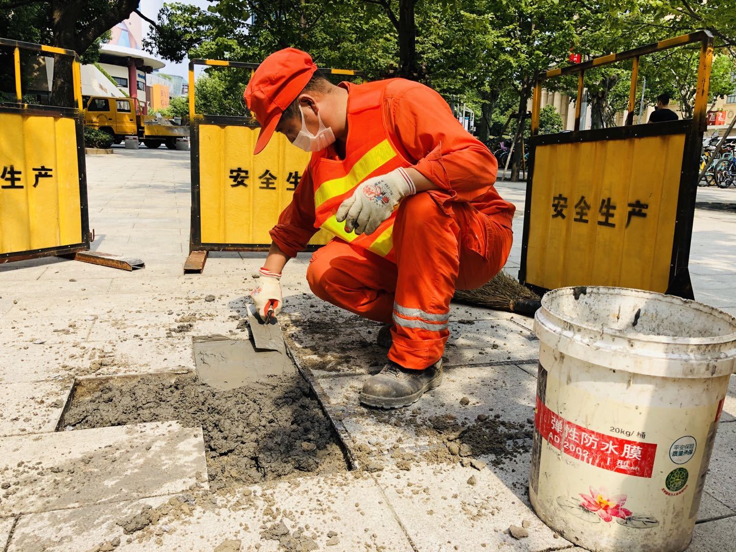 发现问题后,巡路小队及时上报,作业部门根据工单赶赴现场进行施工整改。重点修复破损人行道板及坑洞、更换道路侧石、铣刨破损沥青面层、定期清洗护栏。在施工过程中,围绕少扰民、便百姓、减扬尘的原则,设置警示路障,安全文明施工。