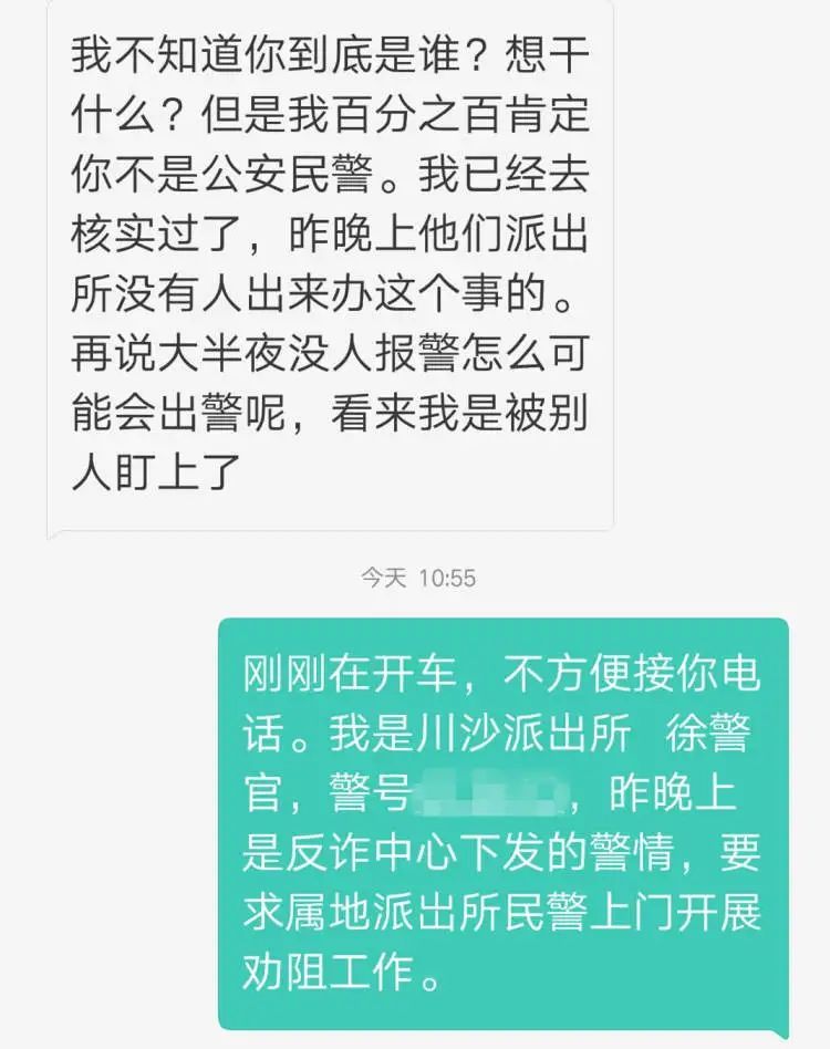 因为无法确认来电劝阻的是不是真警察