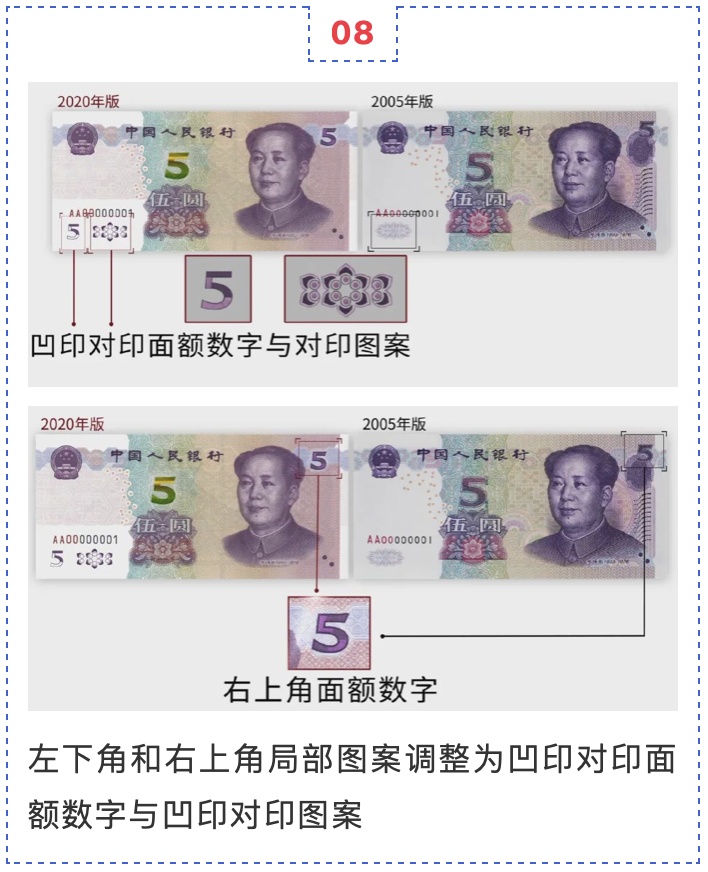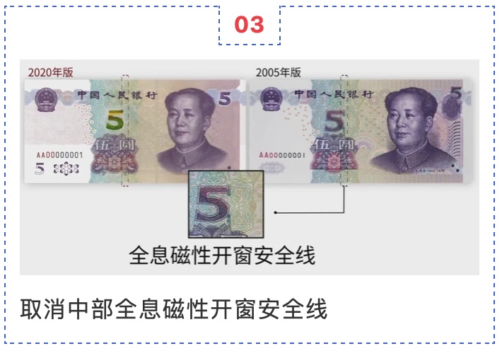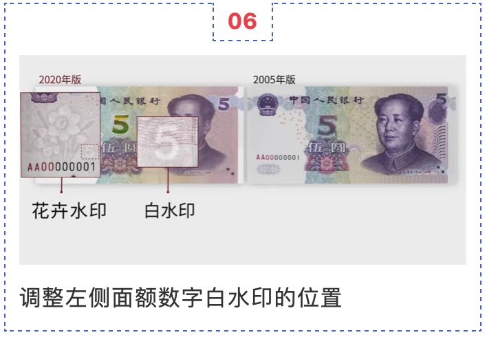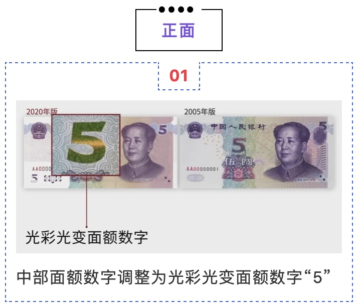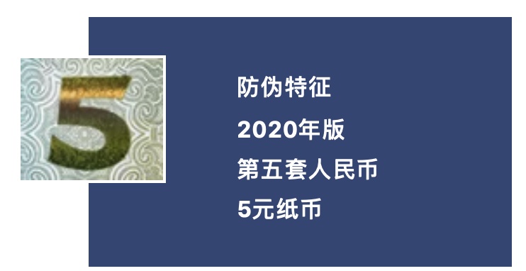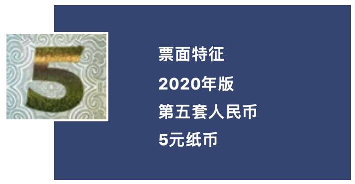 中国人民银行定于11月5日起发行2020年版第五套人民币5元纸币。新版5元纸币保持2005年版第五套人民币5元纸币规格、主图案、主色调、“中国人民银行”行名、国徽、盲文面额标记、汉语拼音行名、民族文字等要素不变,优化了票面结构层次与效果,提升了整体防伪性能。详见↓