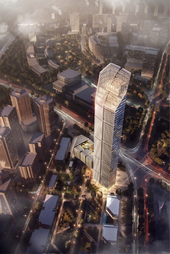 是购物中心与商务办公为一体的高层商业综合体,建筑总面积约14.7万平方米,建成后将成为金桥地区新兴公共活动中心,进一步在购物领域打响金桥品牌。