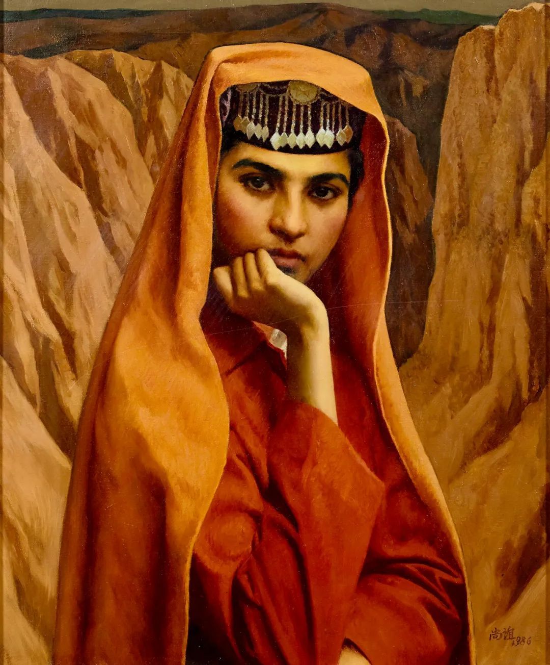 靳尚谊是新时期中国新古典主义油画的重要代表,尤其擅长人物肖像,最代表性的莫过于1983年创作的《塔吉克新娘》。完成于1986年的《高原情》,可以说是同一时期同一主题的另一幅杰作。