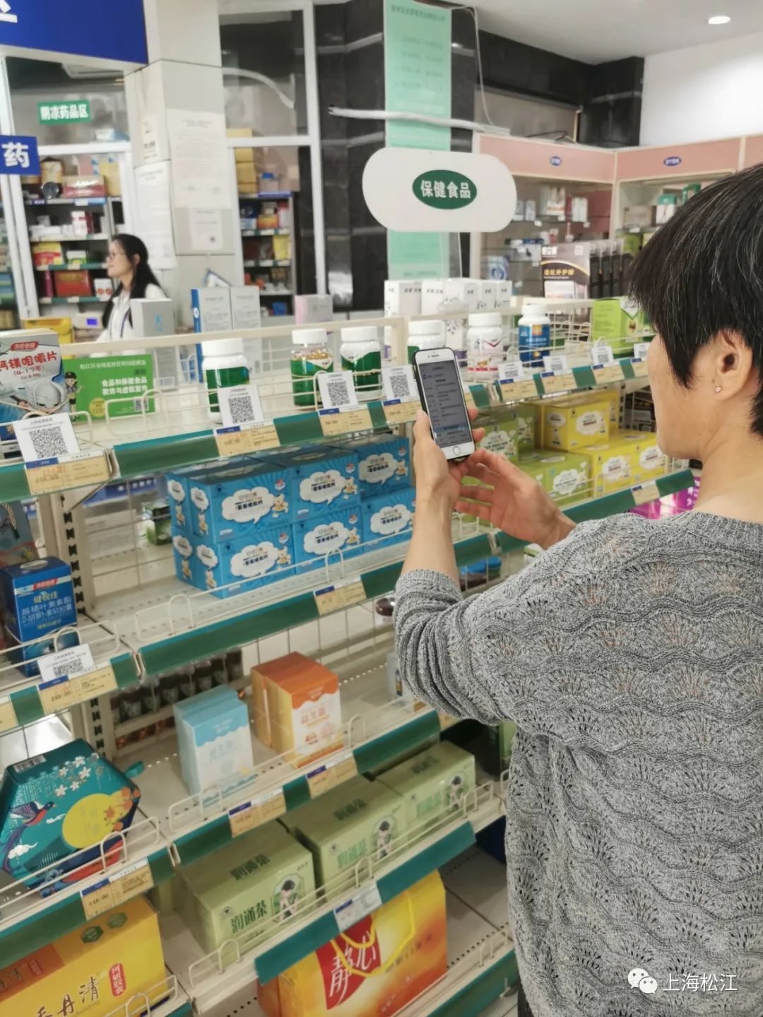 今天上午,市民赵女士走进一家余天成药店,想给家人购买一些保健食品,在“保健食品专区”,不仅商品摆放整齐有序,而且在每种保健食品价格标签旁边还都有一个二维码,市民打开“上海食品安全信息追溯”小程序,扫码后可以看到该种保健食品的流通追溯信息。