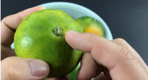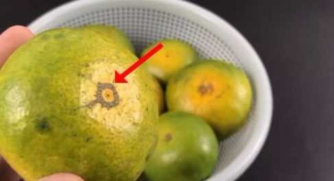 其实不少的水果都可以看果蒂来分辨水果是否成熟,比如说这个橘子,虽然说果蒂很小,但也是有一些区别的。有的果蒂是微微凸起的,还有的果蒂是微微凹陷的,大家要选择那种果蒂微微凹陷的,因为生长期越长。