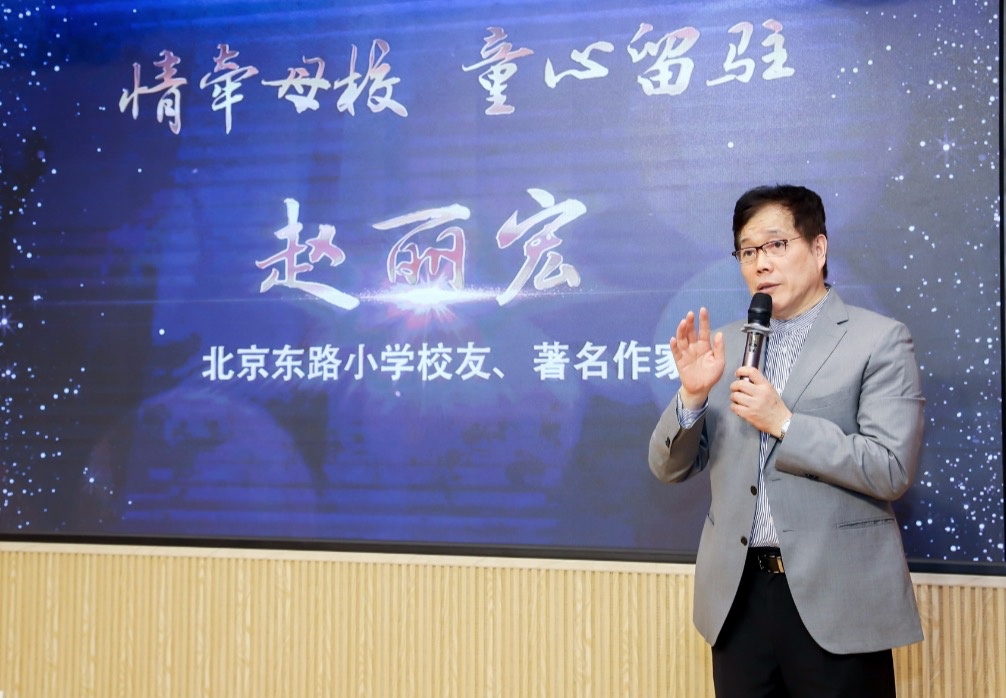 1959年,赵丽宏进入北京东路小学读书,1965年毕业。小学6年的时光,在他生命里留下了一条“童年河”。10年前,他开始构思自己的第一部小说《童年河》,讲述从小在农村长大的雪弟回到上海之后的生活的故事。小说里很多情节都与河有关,这条河就是母校边上的苏州河。而书中的很多人物也都有真实的影子,雪弟的原型就是他自己。