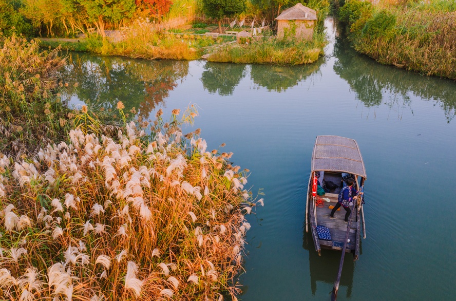 微风吹拂,花絮飘荡,为沙家浜带来一派别样的美景。除了荻,还有芦苇、芦竹等,属于他们最美的花期已经到来。