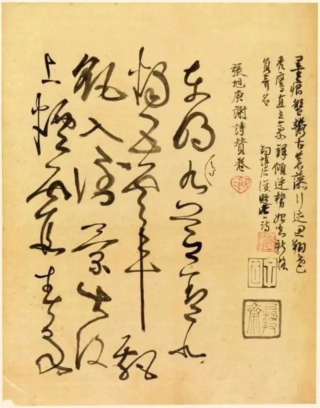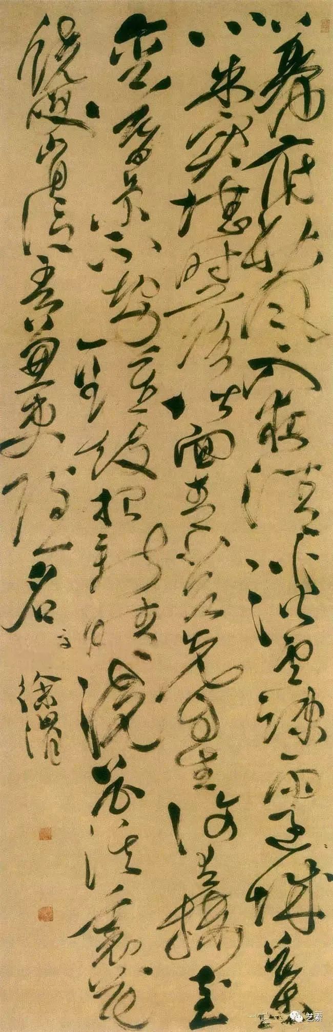 第三次就是徐渭,他将草书突破成了一张线条组成的抽象的图。他的书法懂草书的都认识,但是不写草书的书法家不一定认识。但是那种美,那种浪漫,那种漫天大雪的气象你会感动,其实这时书法已经走向了一种审美通感。这样的作品,给谁看也不是为了认识字,都是看感觉,它只对感情负责,不对实用负责。