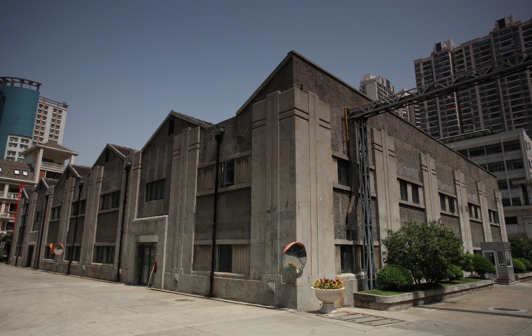 中央造币厂原占地面积7958 平方米,现存原铸币厂房、水塔、辅助仓库等历史建筑。铸币厂房1922 年建造,通和洋行设计,姚新记营造厂承建,仿美国费城造币厂样式,建筑面积4456.84 平方米,钢筋混凝土结构,中部三层,两端二层;立入口门廊高及二层,以爱奥尼克柱支承,上饰三角形山花,两侧饰贯通二层爱奥尼克壁柱;方形门窗,汰石子外墙。