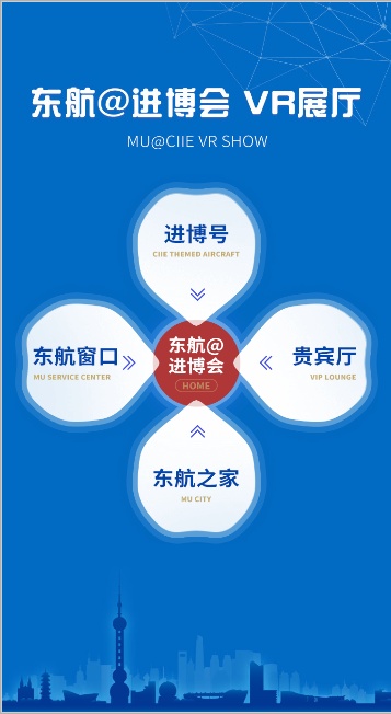 “云展厅”包含了进博号、东航窗口、贵宾厅、东航之家四个部分,360°记录每个场景的展示细节。