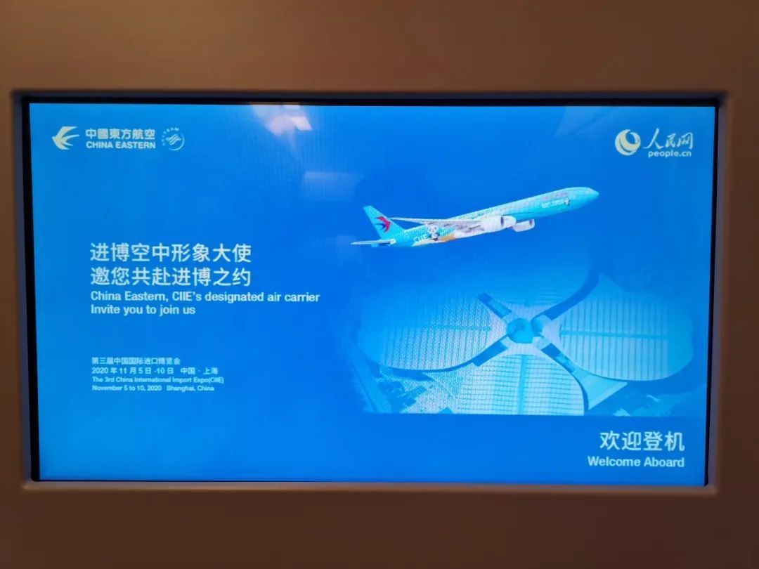 在航班上为旅客实时转播进博会开幕盛况