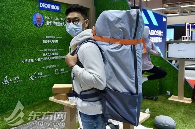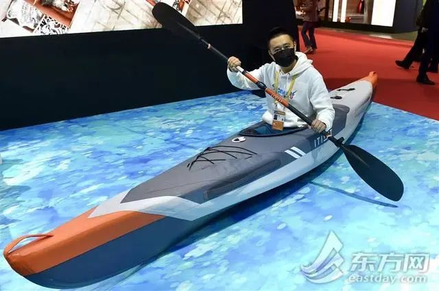充气3分钟,安装5分钟,一个18公斤重的背包就能变成一个皮划艇?若不是在进博会现场亲眼看到,很难相信是真的。这就是法国体育用品集团迪卡侬在进博会上全球首发的充气皮划艇。