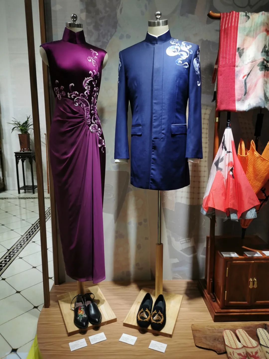 此次亮相非遗客厅的“绒绣”鞋,与中式服装相搭配,演绎出优雅精致的海派风情。