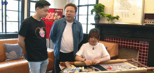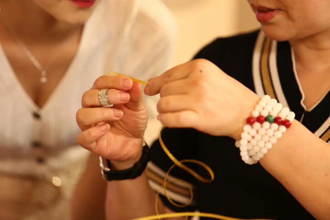 非遗传承人珊丽娜、宋滔展示中式服装盘扣制作技艺。