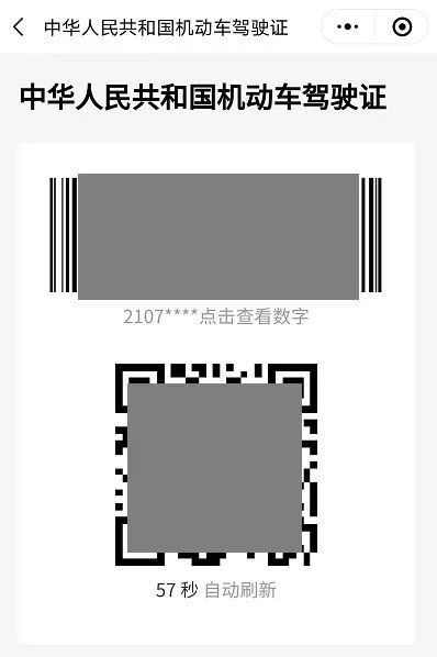 ⑦页面显示电子驾驶证(包括主页、副页信息),点击页面下方的“亮证二维码”还将显示条形码、二维码信息。