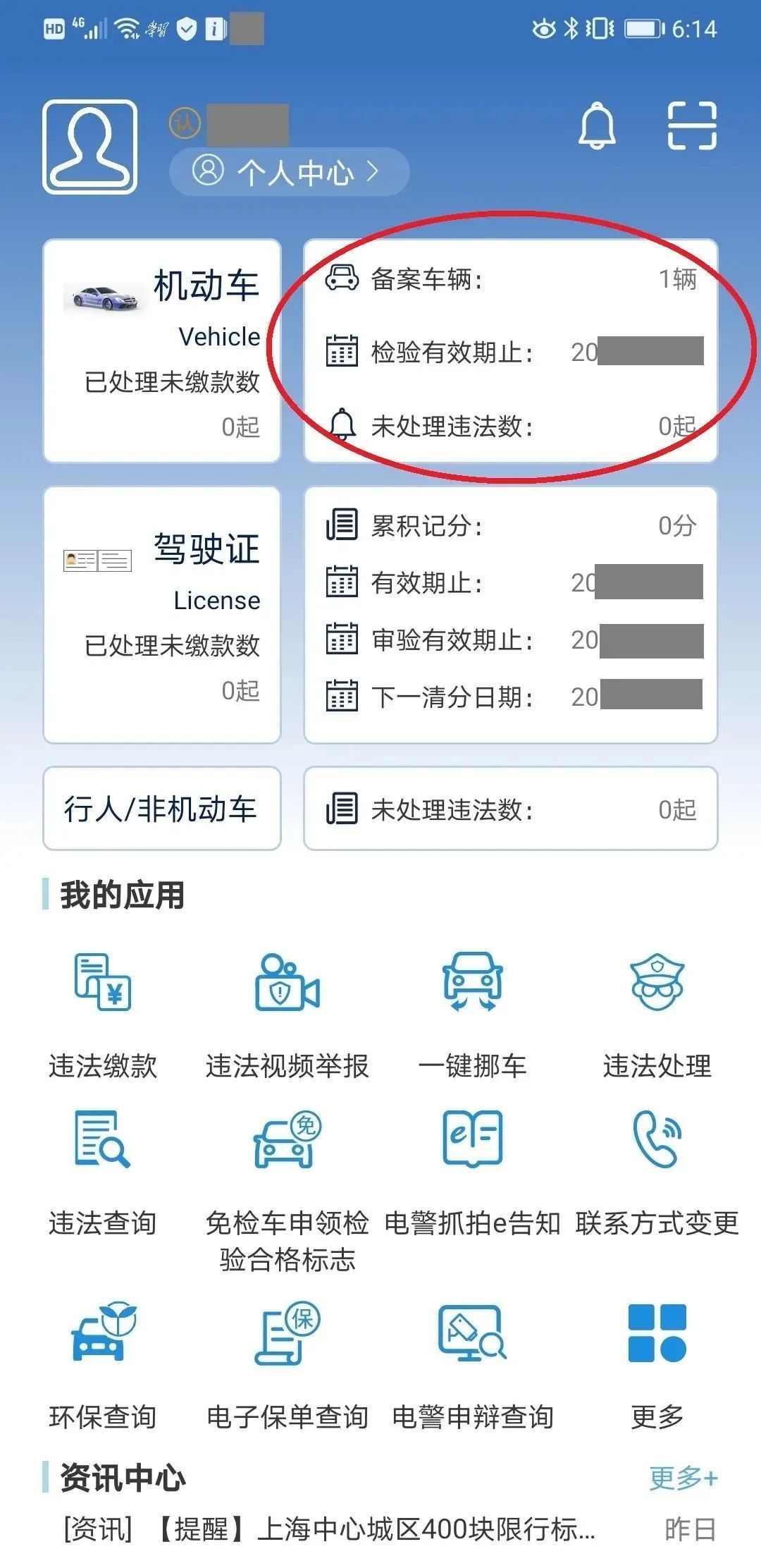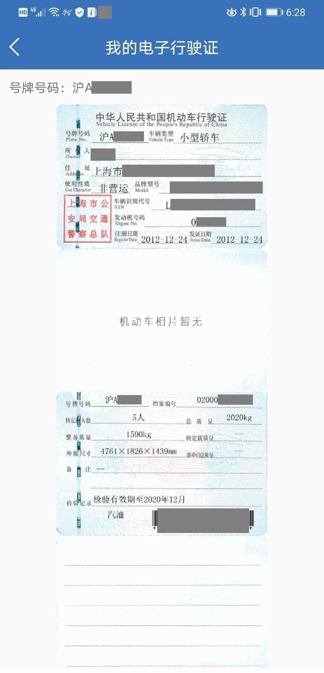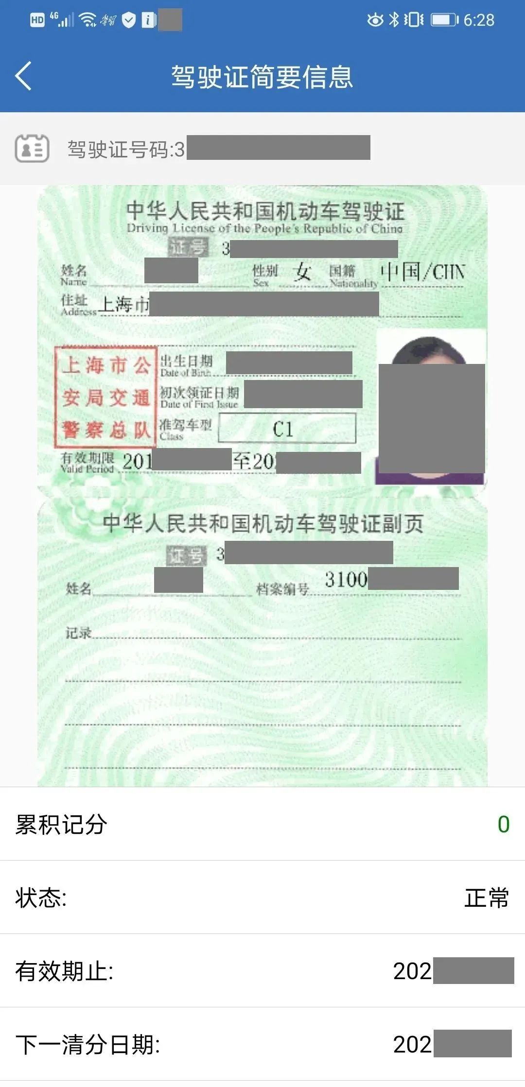 ②页面显示电子驾驶证(包括主页、副页)信息。