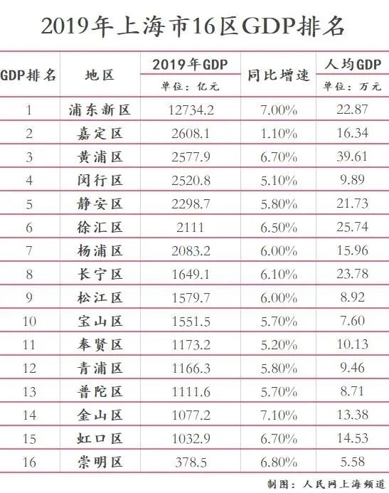 随着上海市下辖16区渐次公布《国民经济和社会发展统计公报》,2019年各家经济数据已全部出炉。