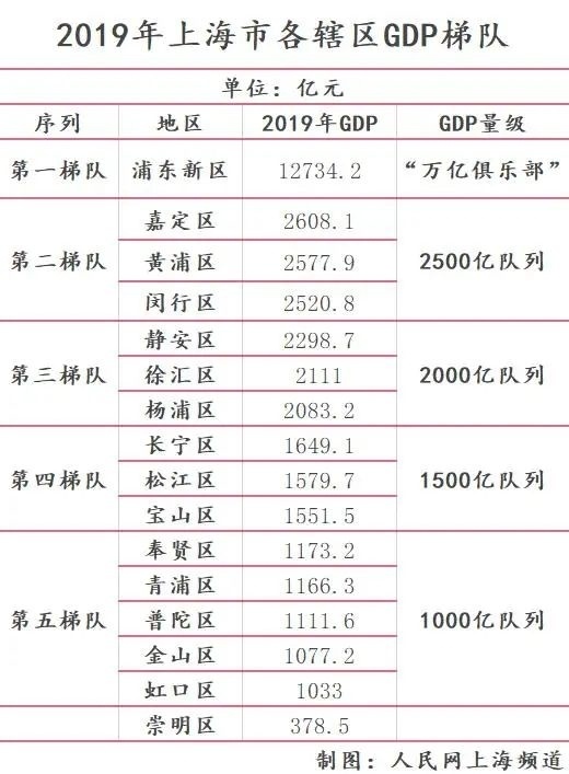 到2019年底,浦东新区地区生产总值已超1.2万亿元,上述6区地区生产总值也相继突破千亿,此外在上海下辖16区中,已有15个区地区生产总值超千亿以上。