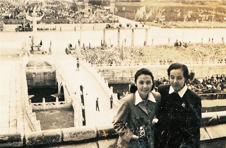 1949年10月1日,开国大典当天,浦熙修(右)应邀登上天安门城楼,与电影演员白杨合影。