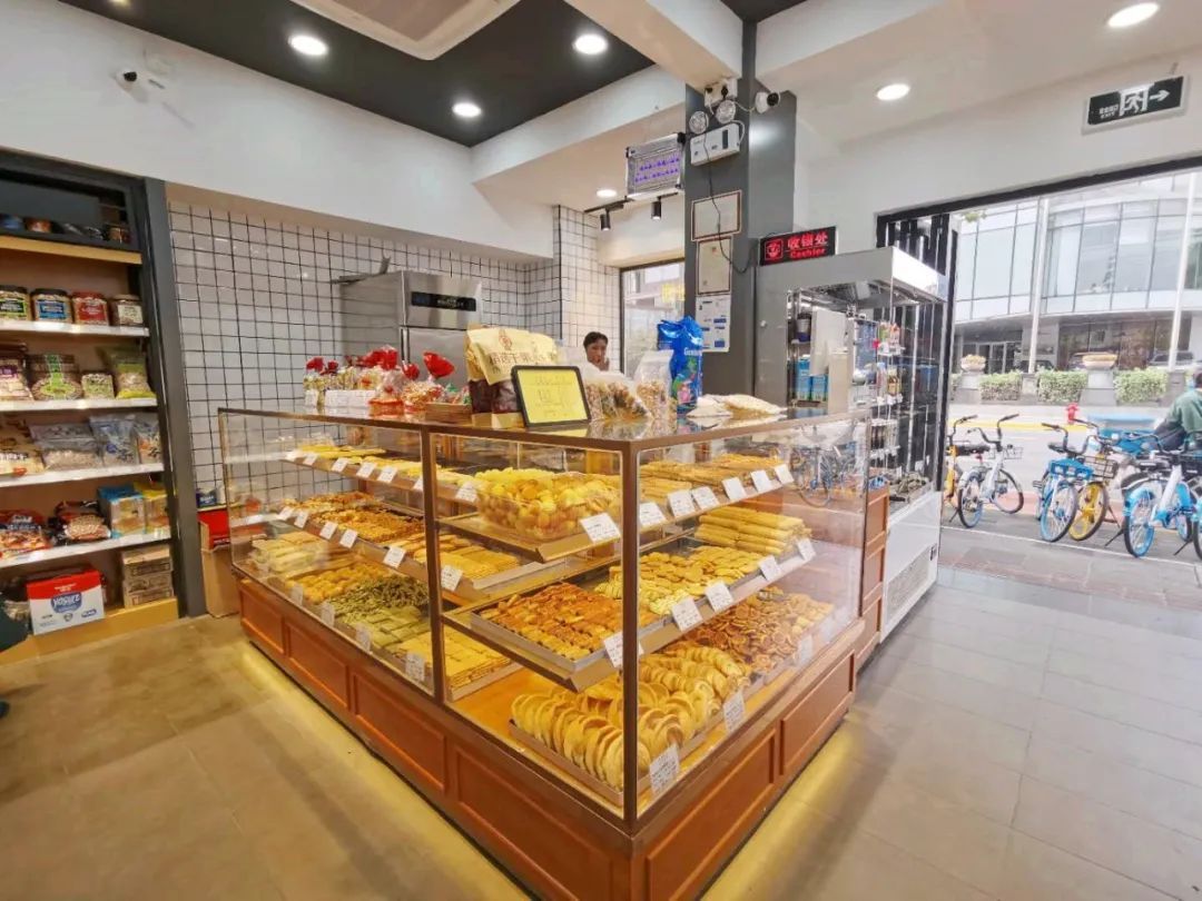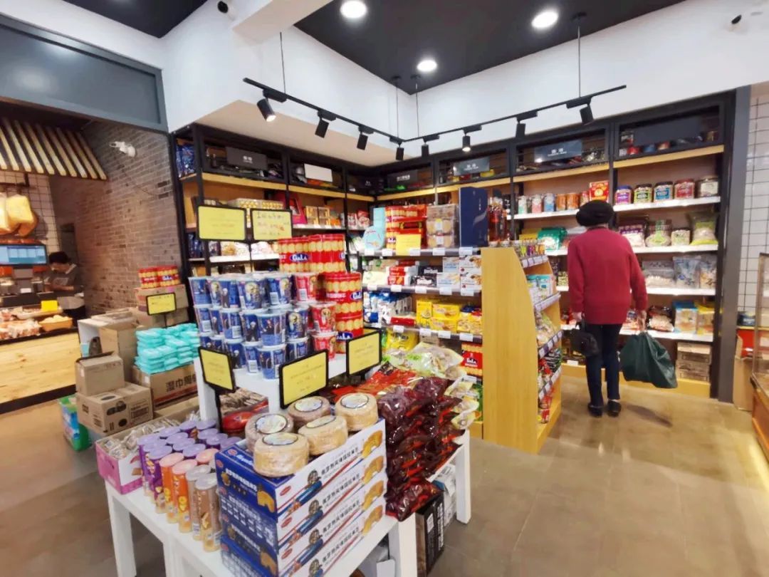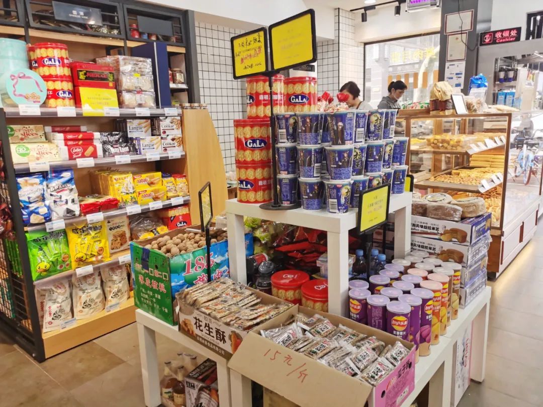 小小的超市囊括了多个上海老字号美食品牌,还有巧克力、牛肉干、坚果等市民最爱的休闲零食。对于这种混搭风格,麦禾田的品牌创始人黄女士告诉小编,自己从小就喜欢吃零食,也喜欢到处找各种零食,不管是国内的零食还是进口的零食,过一段时间之后,总会觉得吃腻了,而土生土长在上海的她从小吃到大的上海老字号美食却像家里妈妈做的饭一样,怎么都吃不腻。而今年因为疫情,门店的生意受到很大影响,黄女士下定决心改变经营类目,重新装修,引进上海人最爱的老字号,将休闲零食超市打造成了综合食品超市。