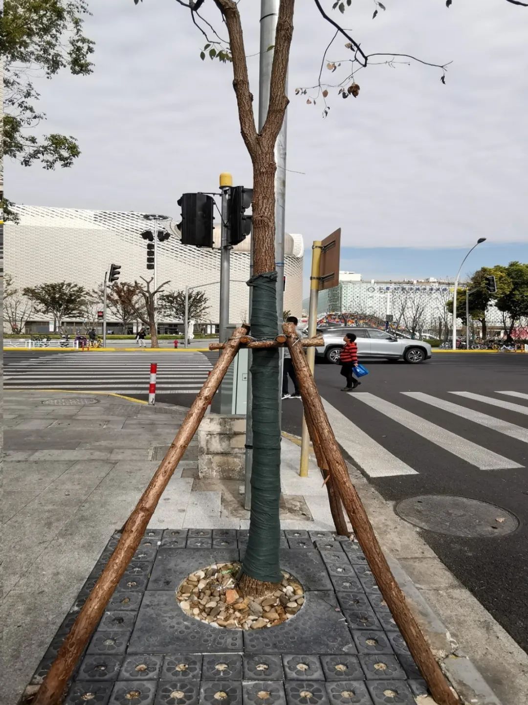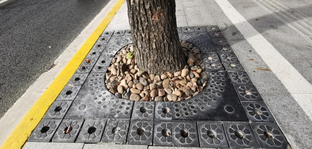 此次改造4条道路铺设新型透水树穴盖板,取代了原先条砖,不仅透水性更好,也便于快速维修更换。