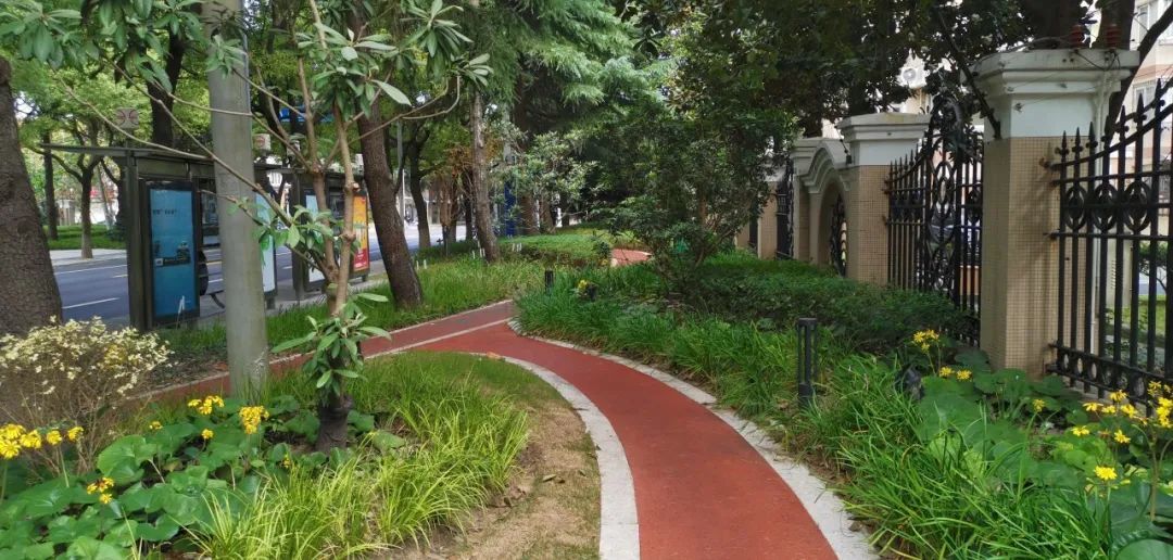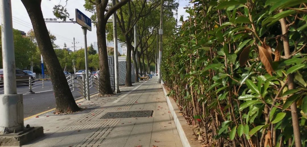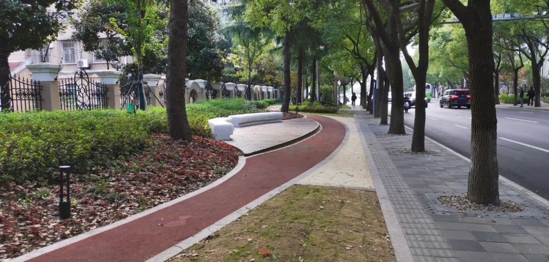 莲花路(吴中路—宜山路),去年道路两侧进行了绿化改造和景观提升,并设置了跑步道,为方面市民夜晚散步休闲,还增添了夜景灯。