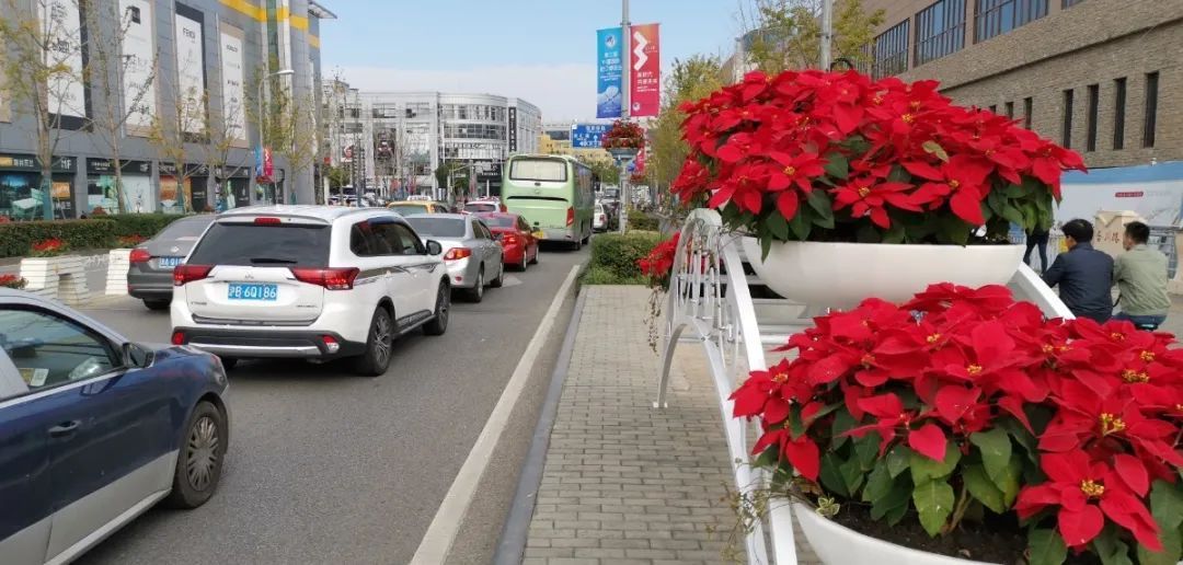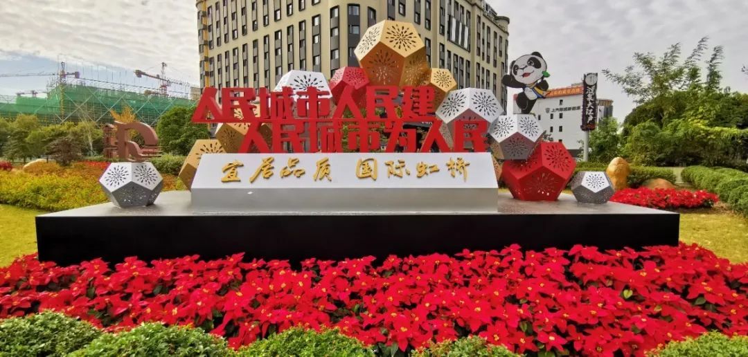 在合川路与吴中路、延安路等路口处设置了17个迎宾花坛和主题绿化景点,庆祝进博会召开。五颜六色的鲜花迎风绽放,增添街景喜庆氛围。