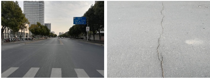 路面沥青老化,出现不同程度损坏,如裂缝、沉陷、松散、车辙等,导致平整度下降。车辆通过时该路段时产生颠簸,不利于车辆的安全行驶。