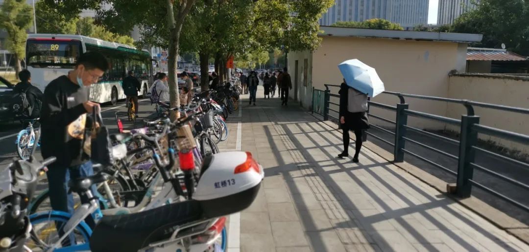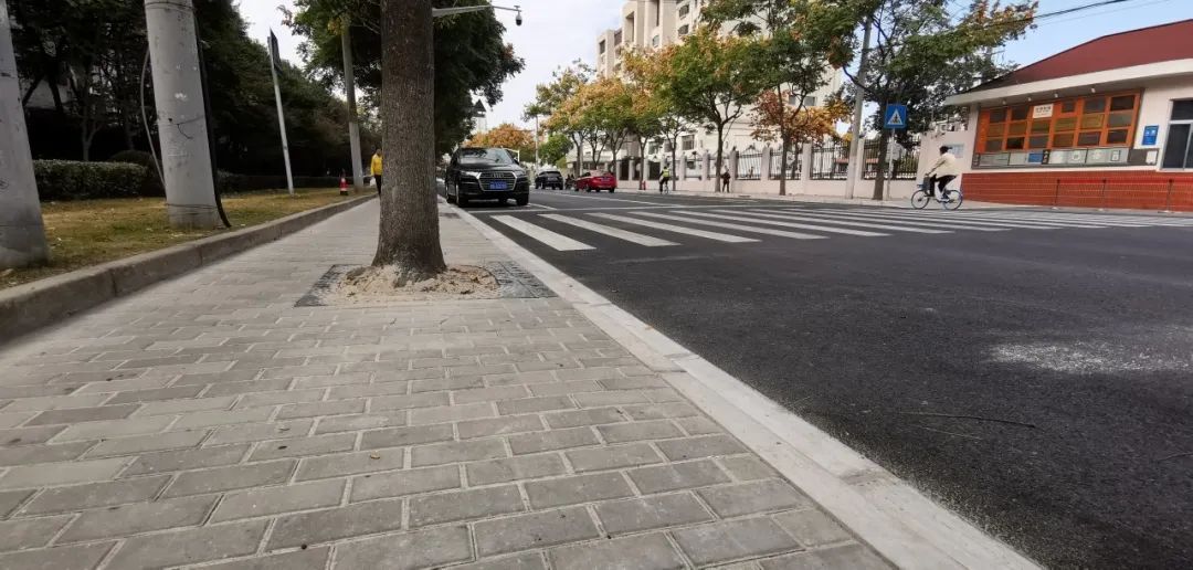 此次改造除了对道路路面改造外,两侧的人行道也做了提升,规划了非机动车停车位,组织人员对道路两侧的非机动车进行持续管理。