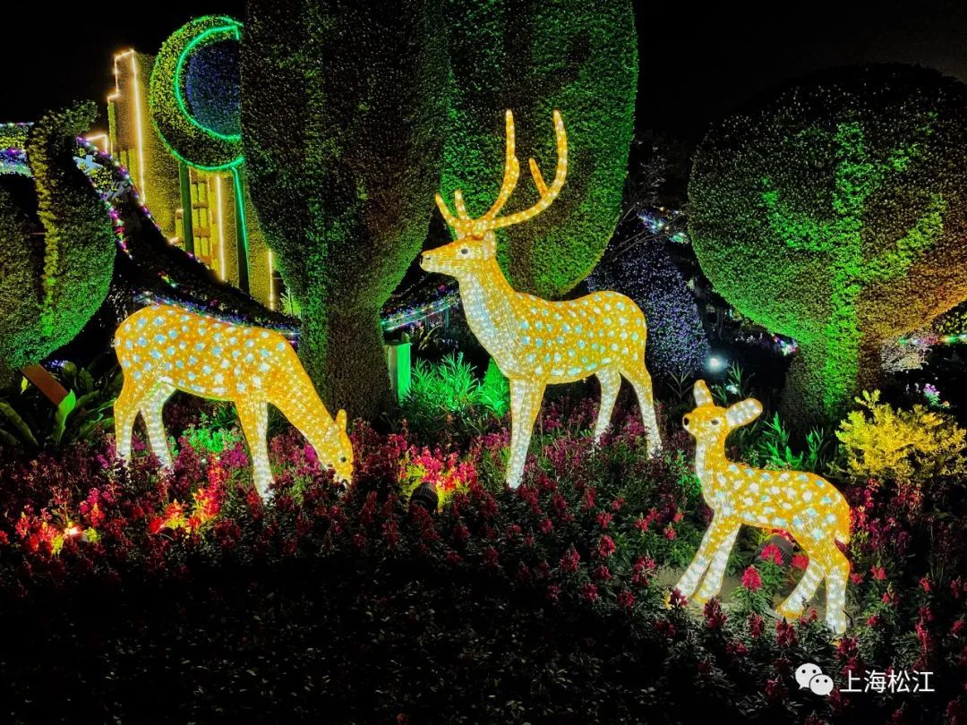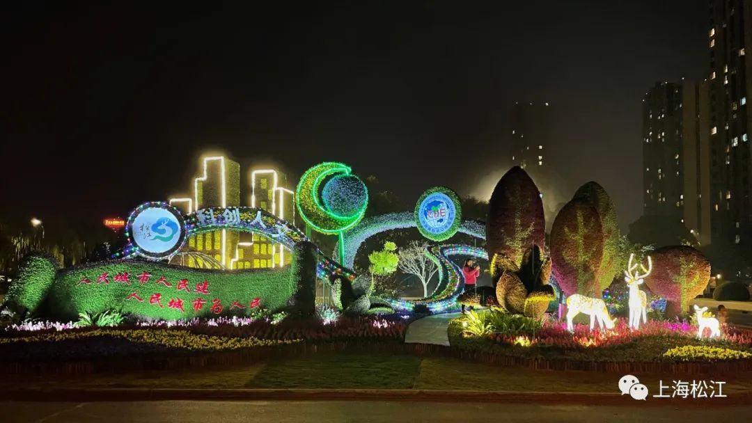 整个立体绿雕高约5米,占地面积350平方米,配有夜景灯光照明设备。小松在现场看到,一条代表G60科创走廊的飘带在城市剪影间围绕,一旁3只梅花鹿在花丛里或低头觅食、或极目远望,形态各异,栩栩如生。夜幕降临,华灯初上,整个立体景观通过射灯、LED串灯,在夜晚形成美轮美奂的观赏效果。