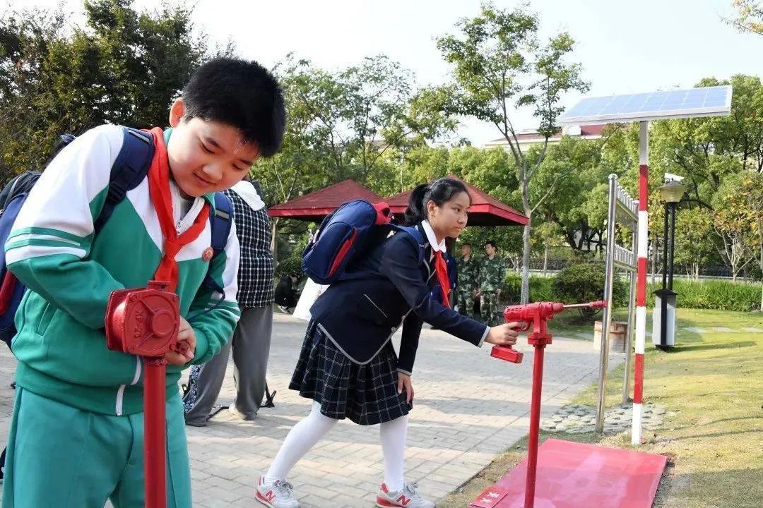 在这个面积8000余平方米的公园里,游客可以看见灭火器模样的分类垃圾桶,还能亲身参与到水枪体验区、烟雾逃生屋等互动活动之中。