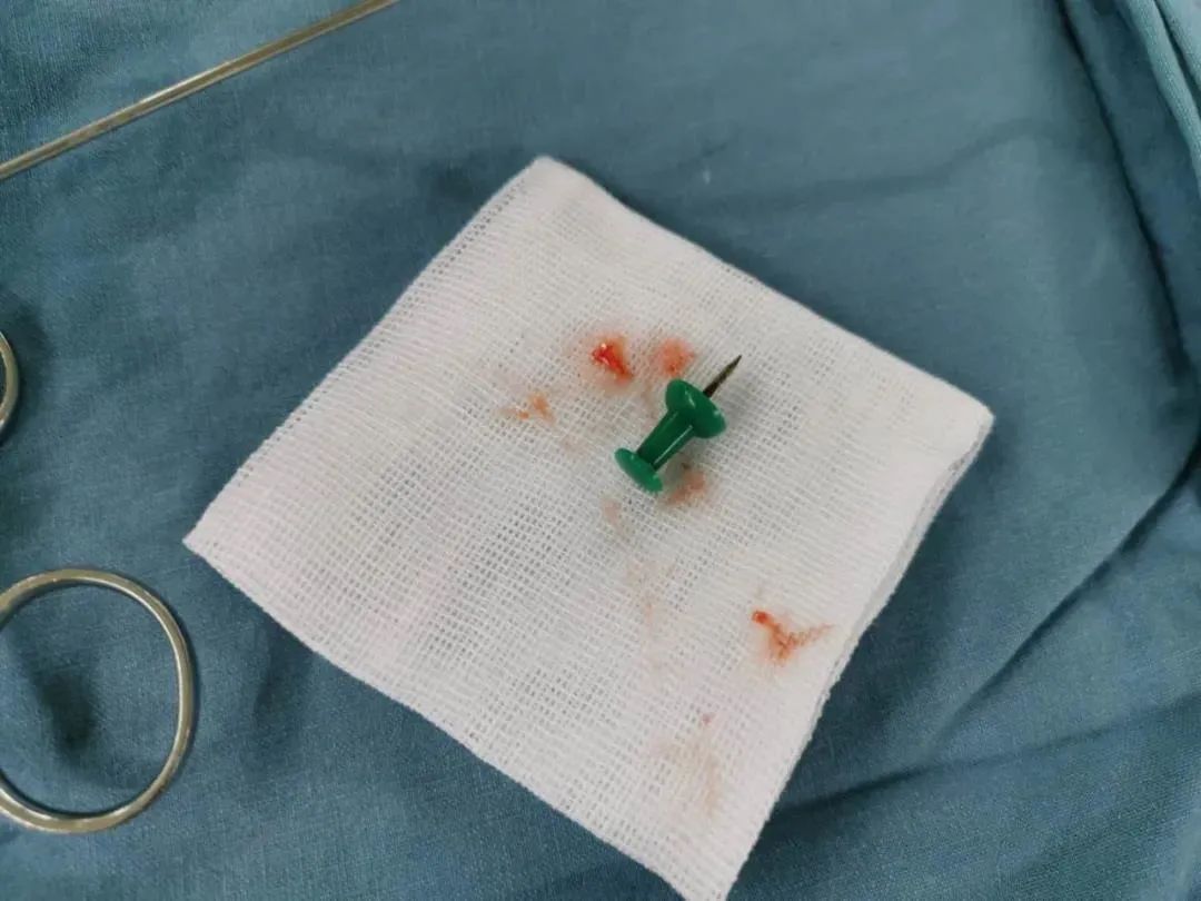 在麻醉科、儿心胸外科、儿急危重症医学科的保障下,耳鼻咽喉头颈外科主任医师黄琦借助支气管镜钳取异物,经过多次尝试,反复调整夹取角度,才将一颗完整的图钉取出。手术过程中。黄琦既要避免不损伤气管,又要把控在取出图钉的时候,不能碰到途径的右侧主支气管、主气道和狭窄的声门裂。所幸的是,手术顺利完成了,术后天天恢复良好,第二天即出院。