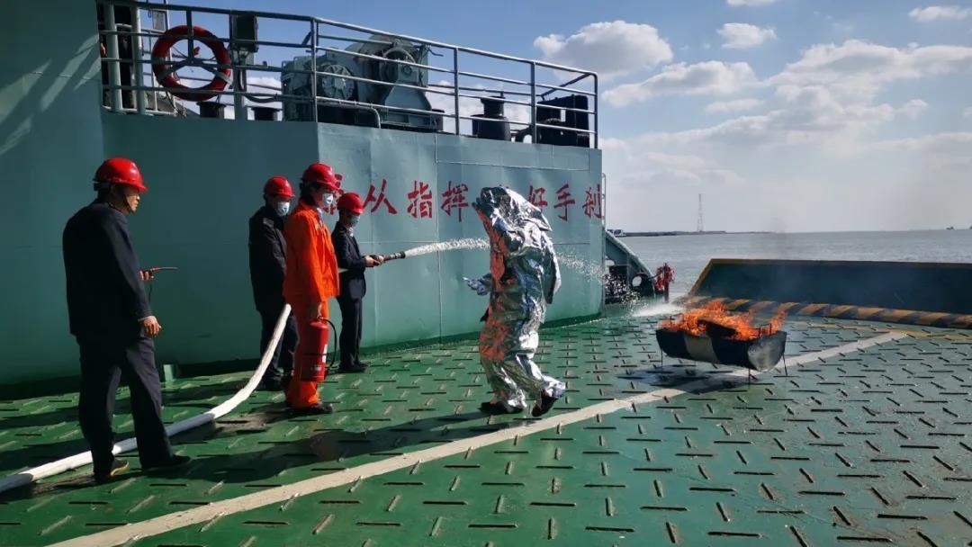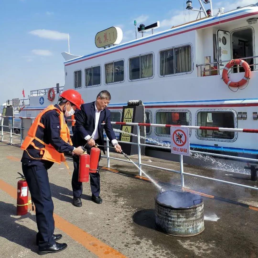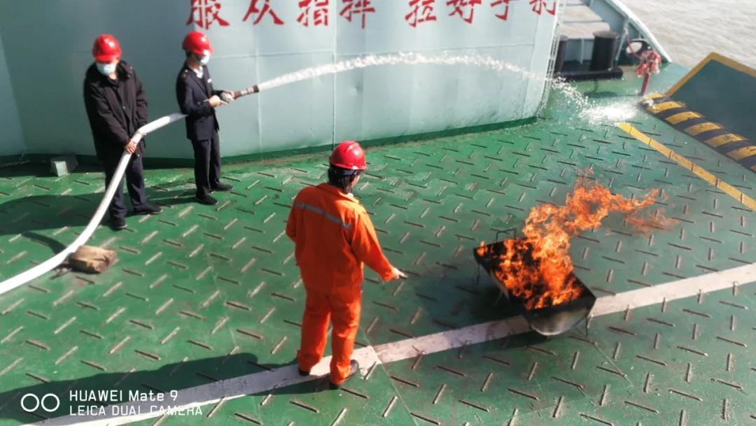 新河车客渡分公司组织石洞口站、“生态岛1”轮职工,联合石洞口水上派出所、石洞口电厂消防队开展船岸消防演习。