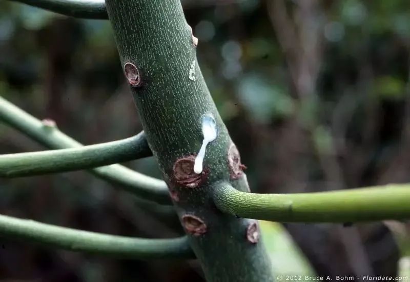 一旦折断光棍树的茎干,会见到有白色乳汁流出,这是有毒性的,只要你不吃就没事,所以外国人又把它们叫成milk bush(牛奶树),哈哈,别真的去试试哦。光棍树不畏炎热,皮实好养,是看家护院的不二之选。