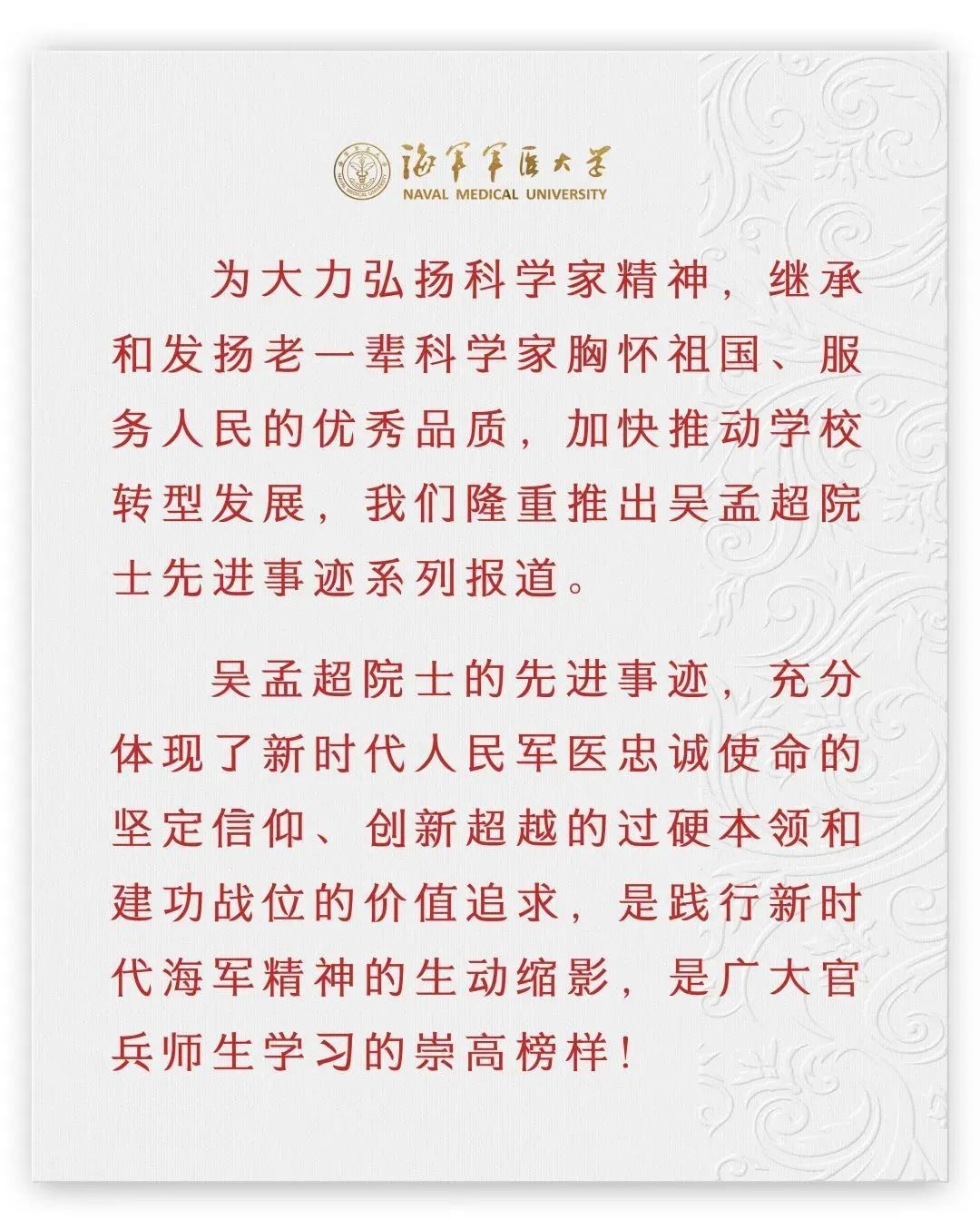 几个月后,当得知华东军区后勤卫生部正在筹建的医学院招聘医生时,刚刚大学毕业的吴孟超欣喜若狂,第一时间直奔筹备处报名。经过考核,他如愿成为一名光荣的人民医生。
