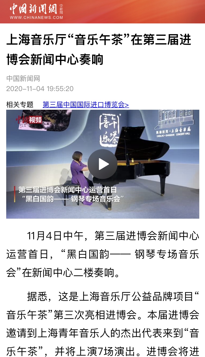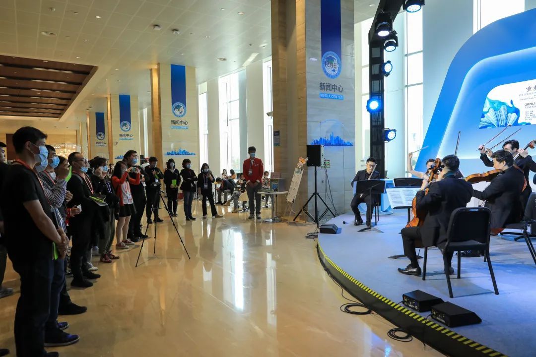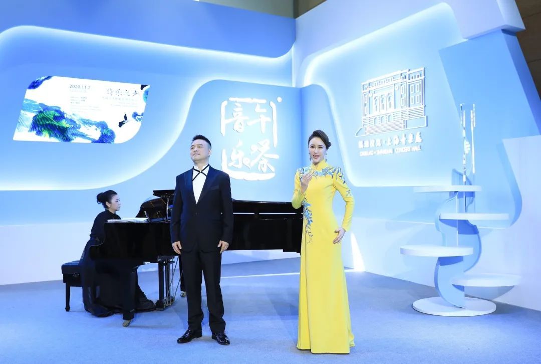 11月4日记者中心运营首日,“黑白国韵—— 钢琴专场音乐会”,旅德奥钢琴家唐瑾和旅欧钢琴家朱和用黑白琴键带来黎英海先生改编的钢琴《夕阳箫鼓》,杨立青作曲《小奏鸣曲》《山歌与号子》等中国钢琴作品。
