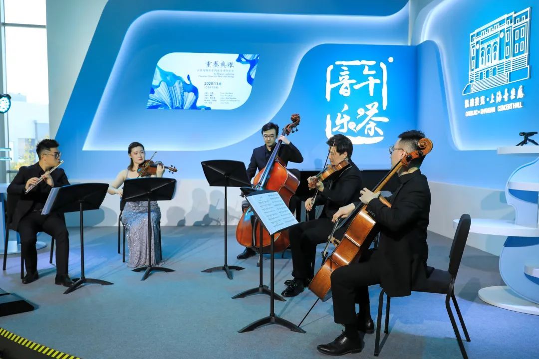 11月6日,“重奏典雅——室内乐专场音乐会”,现场欣赏到多部中国作品的重奏版本:入选“20世纪华人音乐经典”,谭小麟作曲《小提琴与中提琴二重奏》;长笛与弦乐五重奏《半个月亮爬上来》;长笛与弦乐五重奏《金蛇狂舞》。展陈主题:“上海的音乐”,呈现上海近现代音乐发展概览。