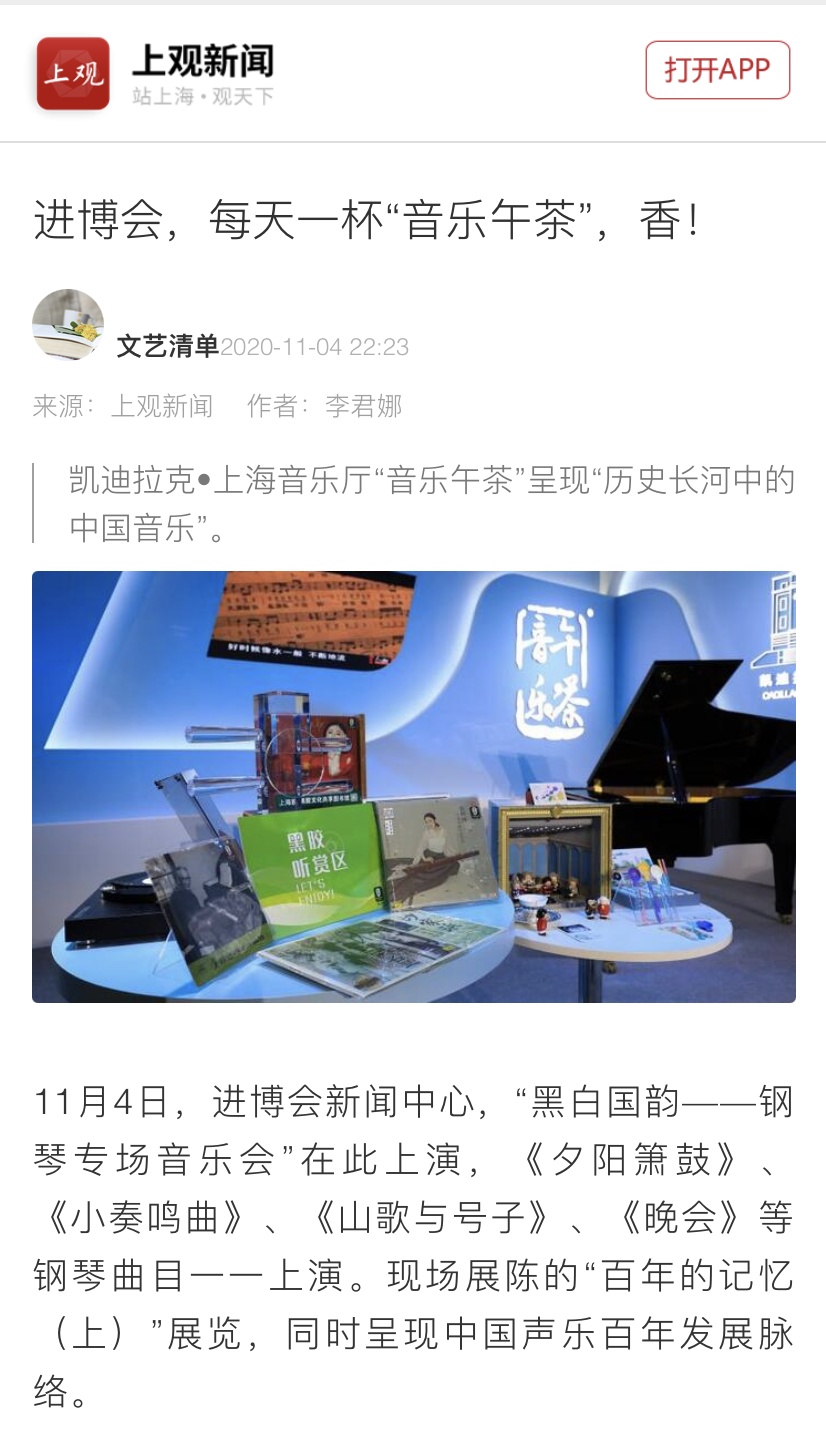 本届进博会,音乐午茶以“历史长河中的中国音乐”为主题,通过“赏”+“鉴”呈现“音乐演出”和“音乐展陈”。根据每日演出内容,规划了7个不同历史线索、主题的音乐资料展陈。