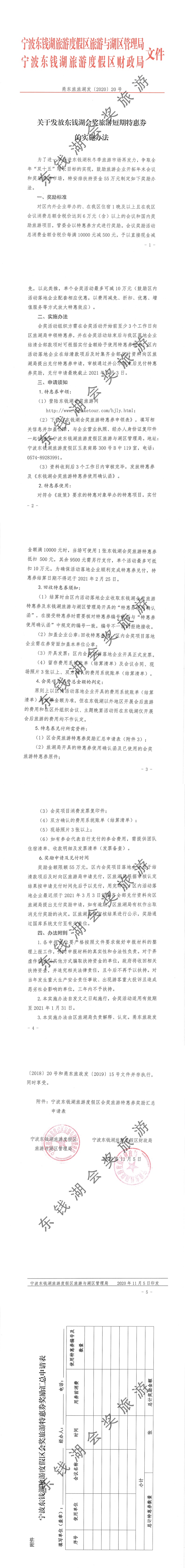 △“在资料下载专区”下载《东钱湖会奖旅游特惠券申领表》,填妥后加盖公章,与企业营业执照、经办人身份证复印件一起快递给我们,经审核后3个工作日内即发放特惠券、《东钱湖会奖旅游特惠券使用确认函》。