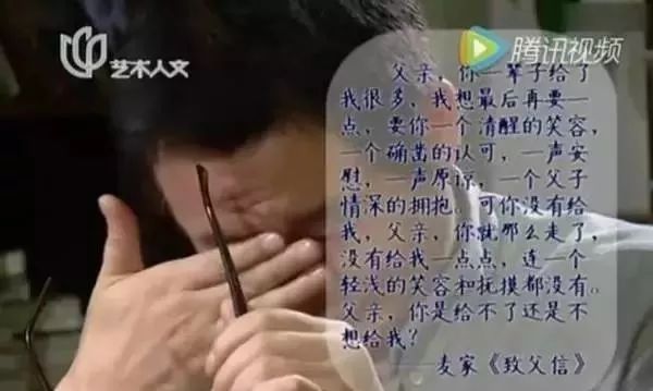 这是《朗读者》中,作家麦家老师在《致父亲》中,说的一段话。