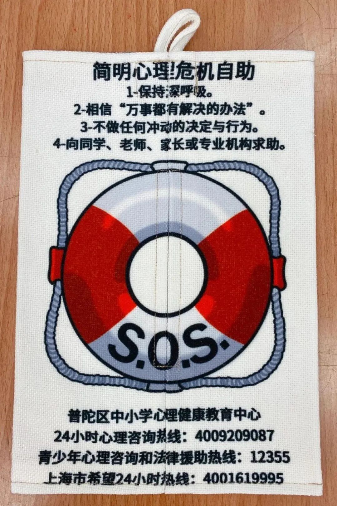 应急袋上标注了心理危机简易处理守则和心理求助热线,时刻提醒学生学会求助,珍爱生命。