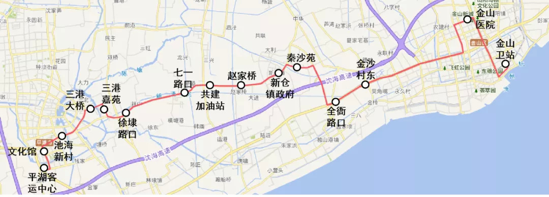 平湖客运中心至铁路金山卫站毗邻公交线路线路