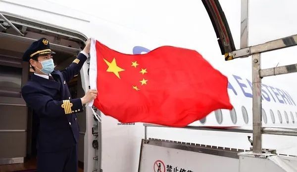▲东航机组迎接我国首批援外抗疫专家组从浦东机场登机启程前往意大利