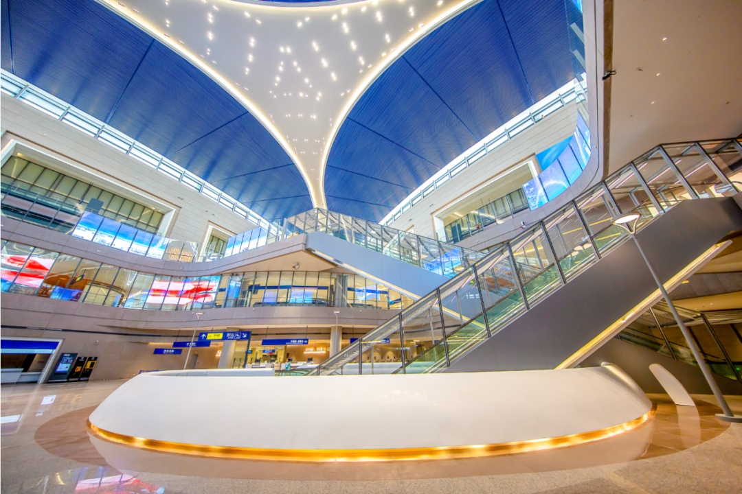 2019年9月16日,浦东机场三期扩建主体工程建成启用,全球最大的单体卫星厅正式投入运营,东航执飞的MU787“上海-罗马”航班,成为第一班从卫星厅出港始发的航班。